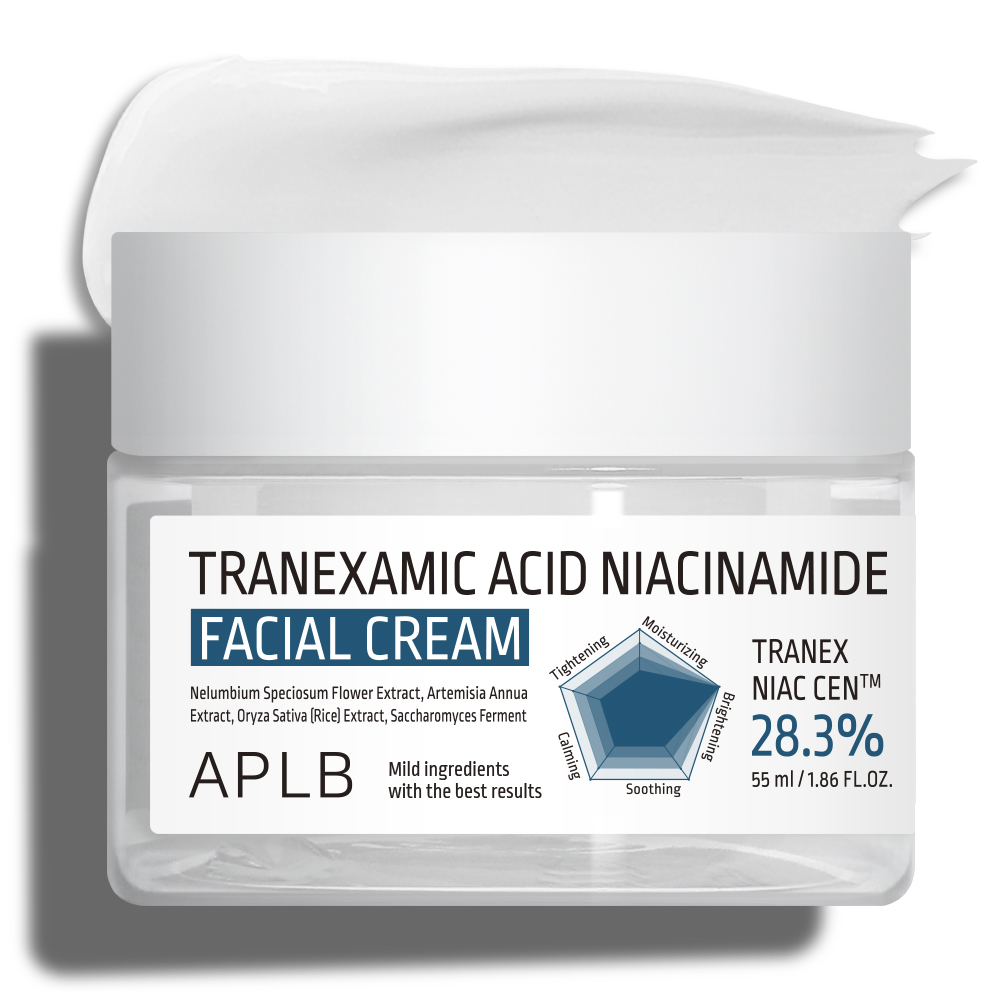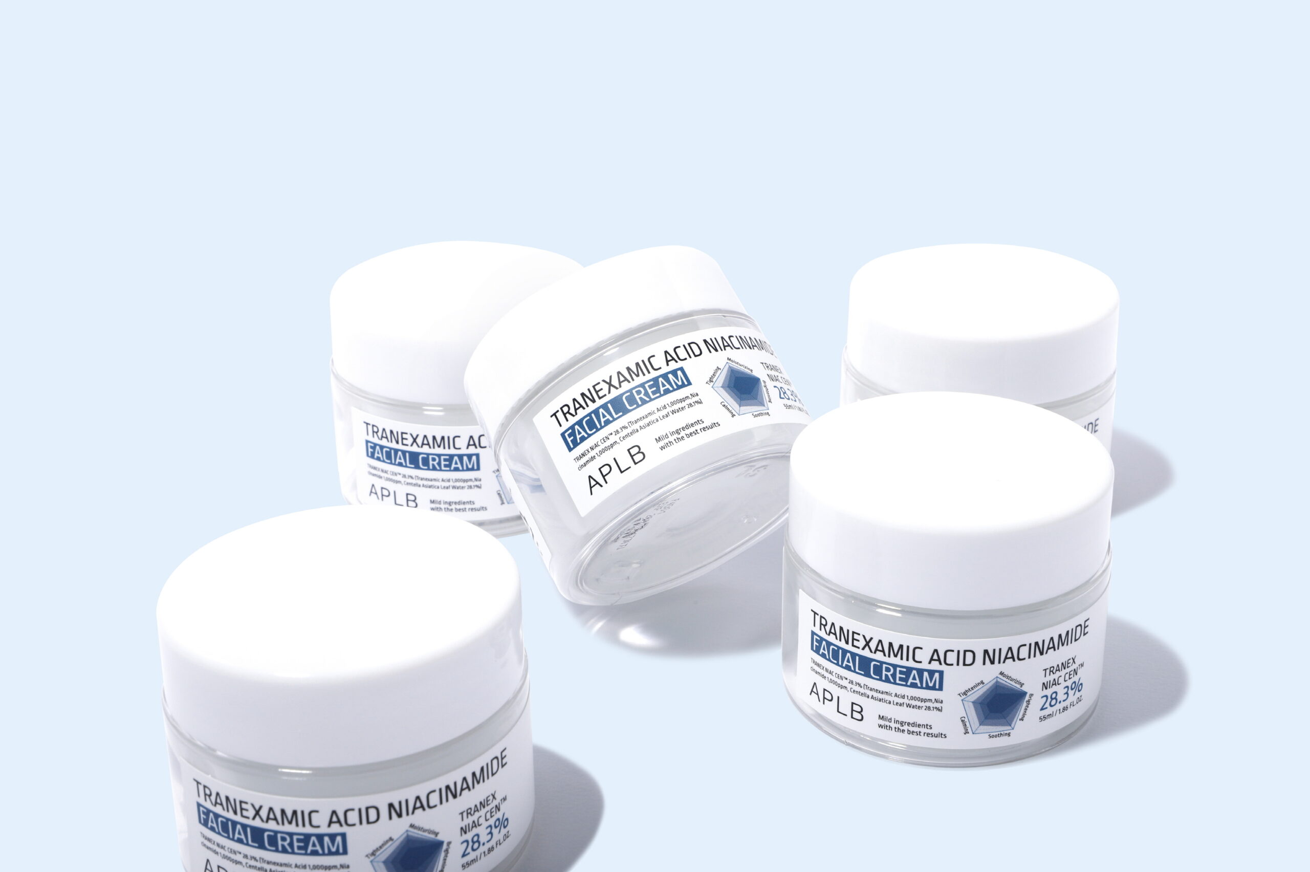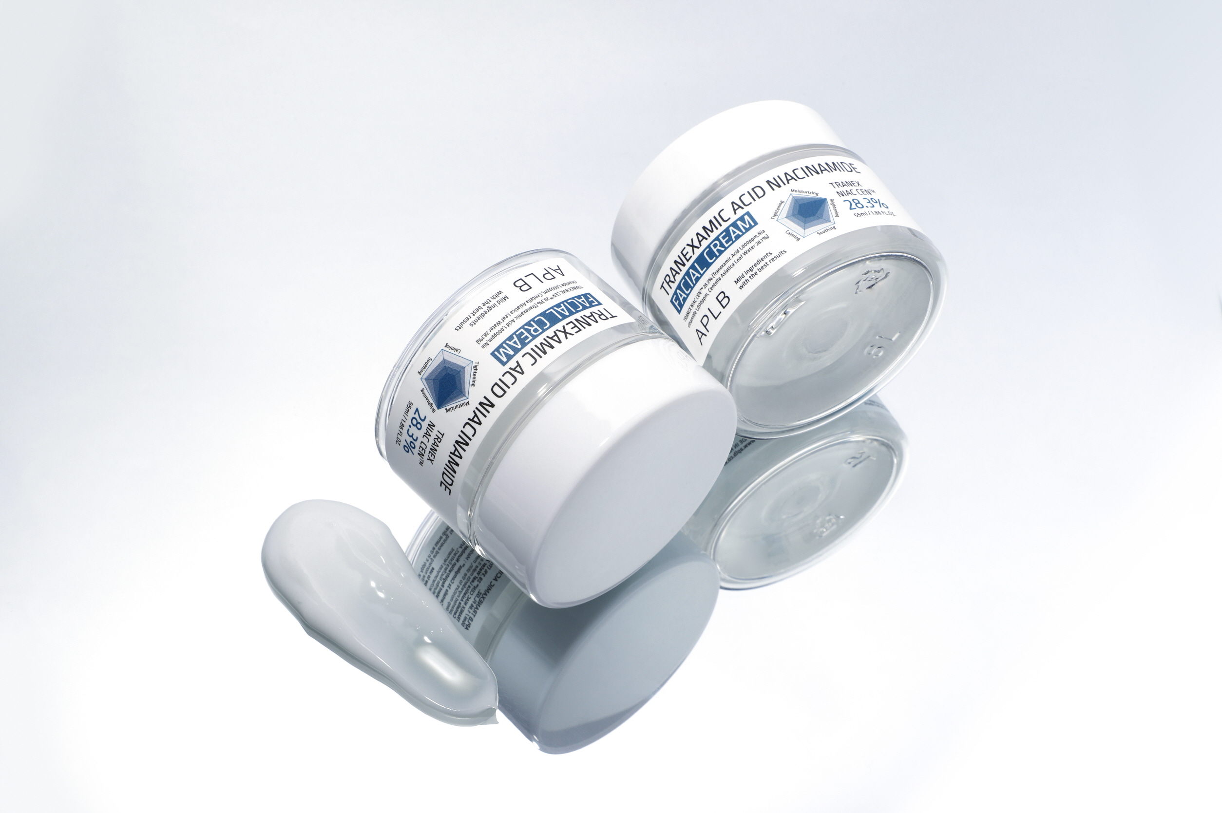Kwas traneksamowy: Syntetyczna pochodna lizyny, często stosowana do rozjaśniania przebarwień i wyrównywania kolorytu skóry poprzez hamowanie syntezy melaniny.