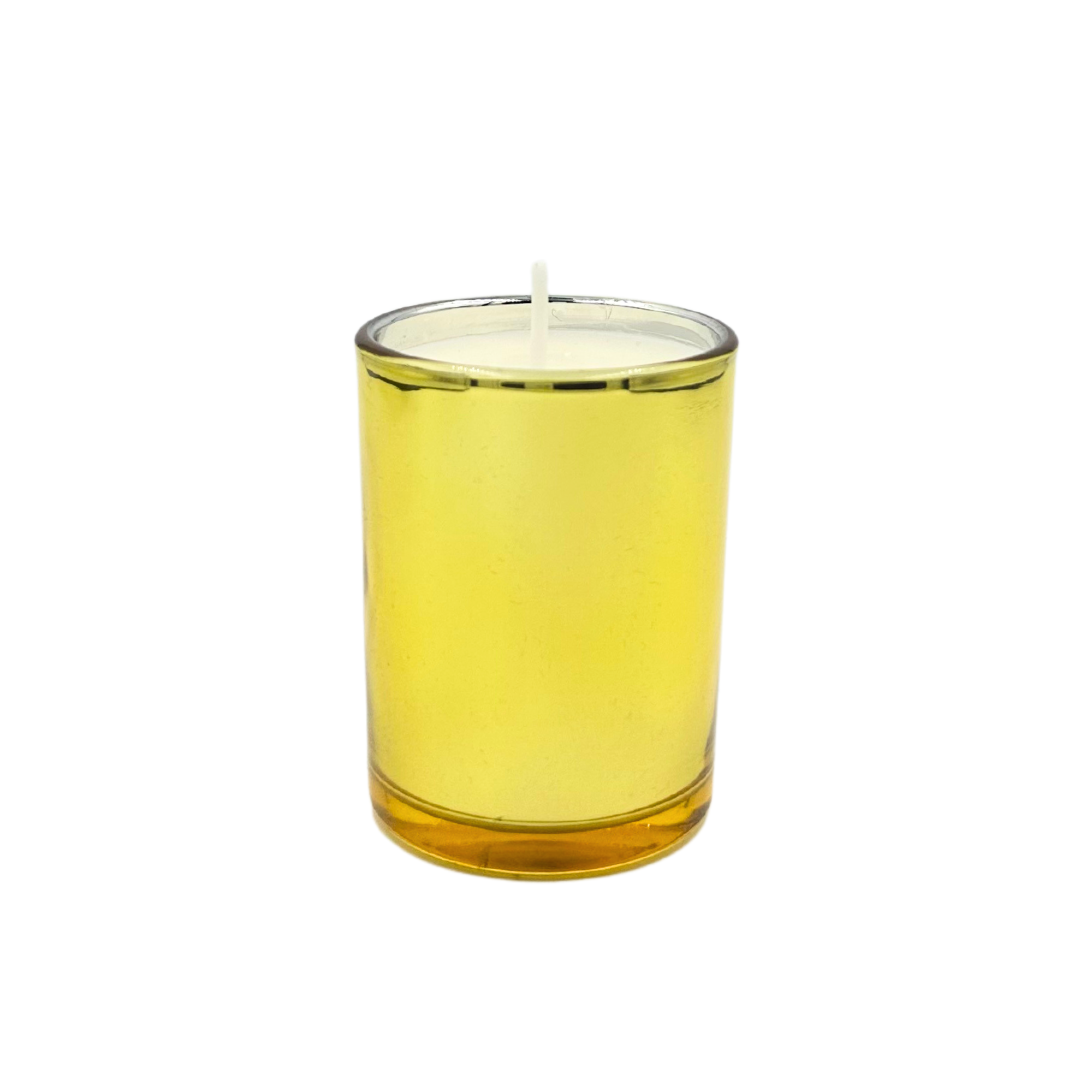 Świeca w złotym szklanym słoju – tworzy przytulny, relaksujący nastrój podczas kąpieli.