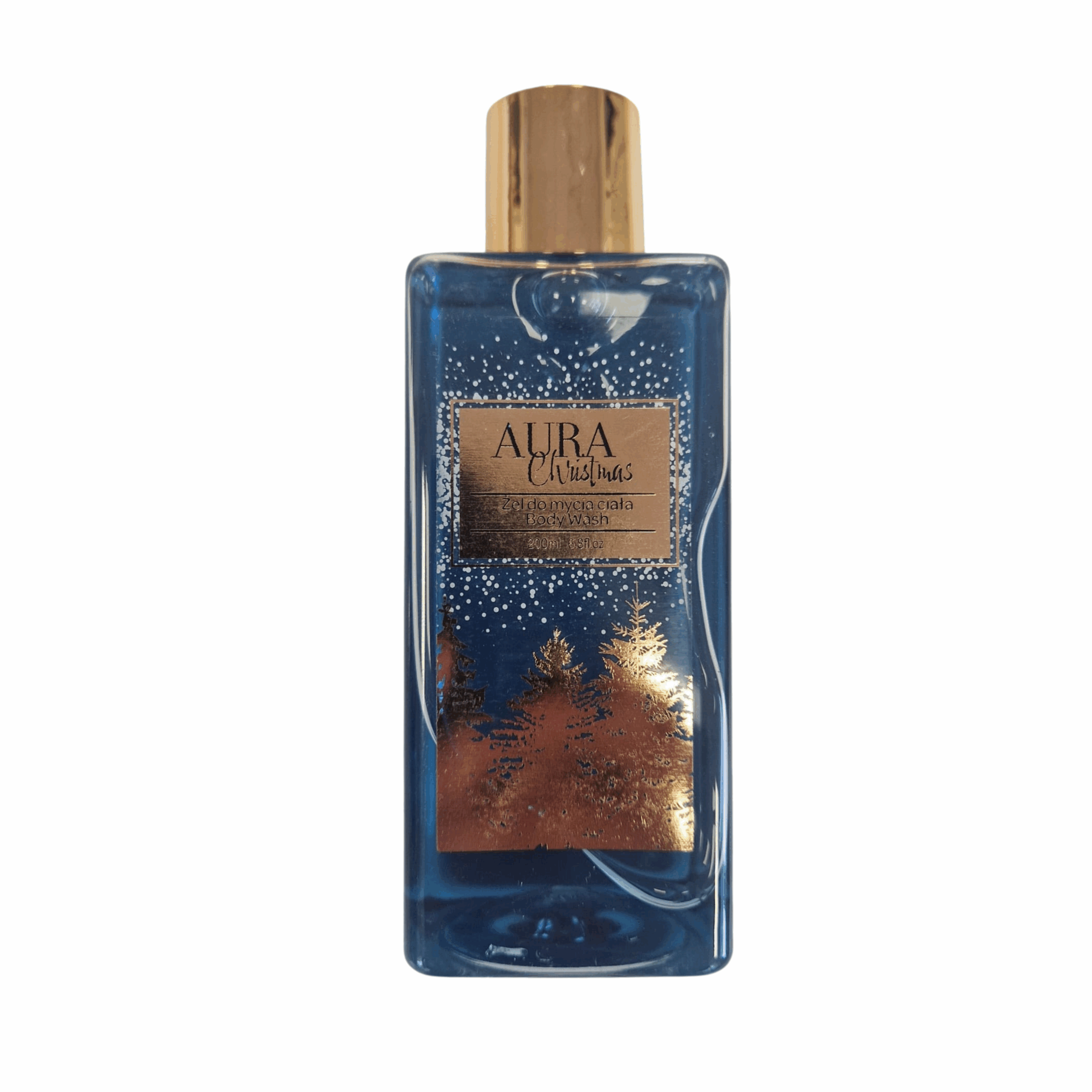 AURA Christmas Set – Żel do mycia ciała 200 ml, Balsam do ciała 200 ml & Płatki mydła w kształcie gwiazdki