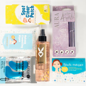 Zestaw BEAUTY RESCUE KIT – ekspresowa pomoc w pielęgnacji. Mgiełka AURA, płatki pod oczy, bibułki matujące i pędzel w tubie. Idealny prezent kosmetyczny dla kobiet.