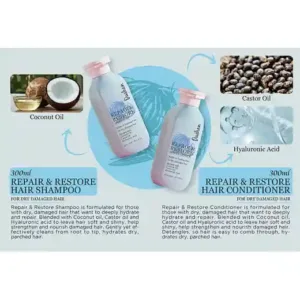 Głęboko nawilża i regeneruje. Z dodatkiem oleju kokosowego, oleju rycynowego i kwasu hialuronowego, aby nadać włosom miękkość i połysk, a także pomóc wzmocnić i odżywić zniszczone włosy. Ułatwia rozczesywanie, nawilża suche i przesuszone włosy.