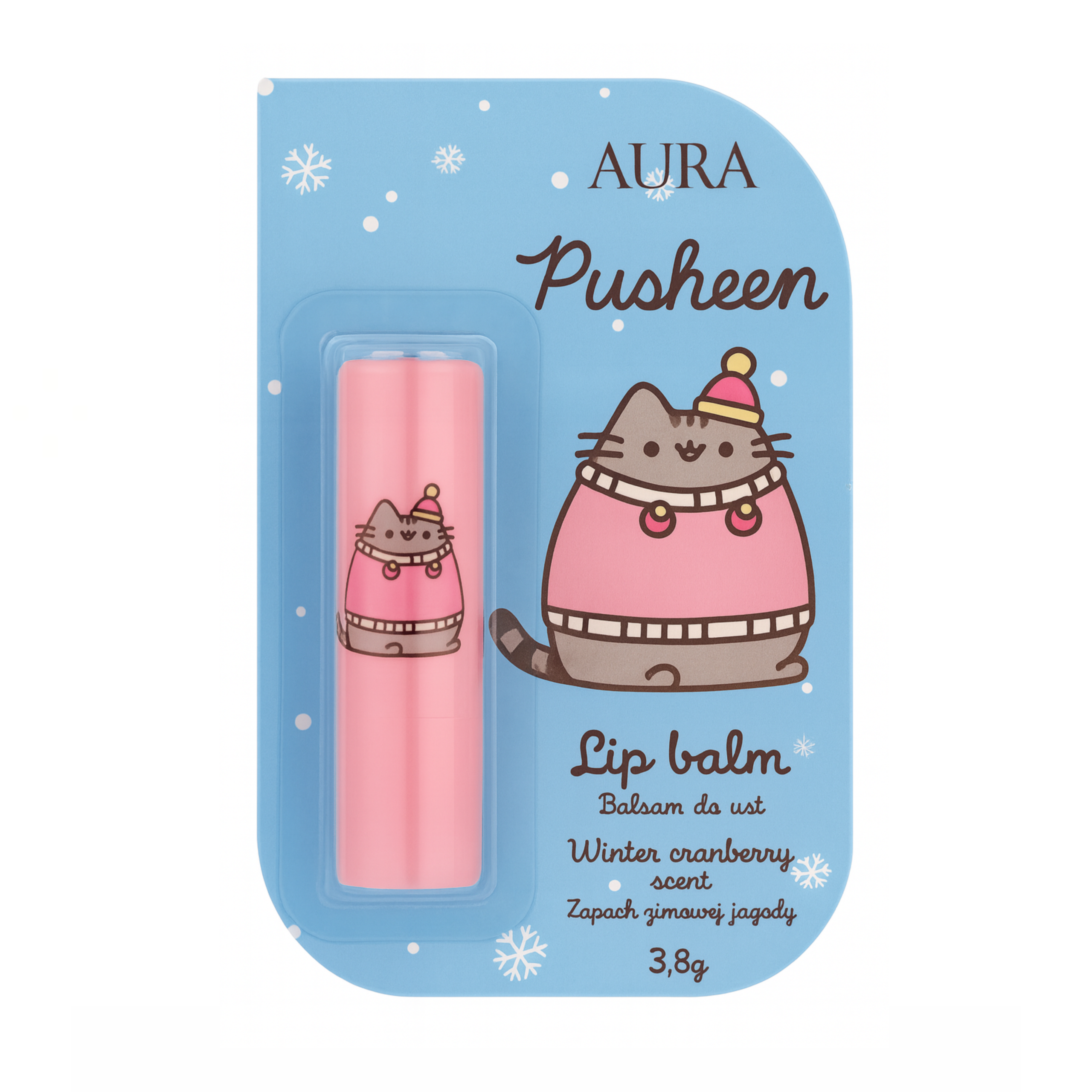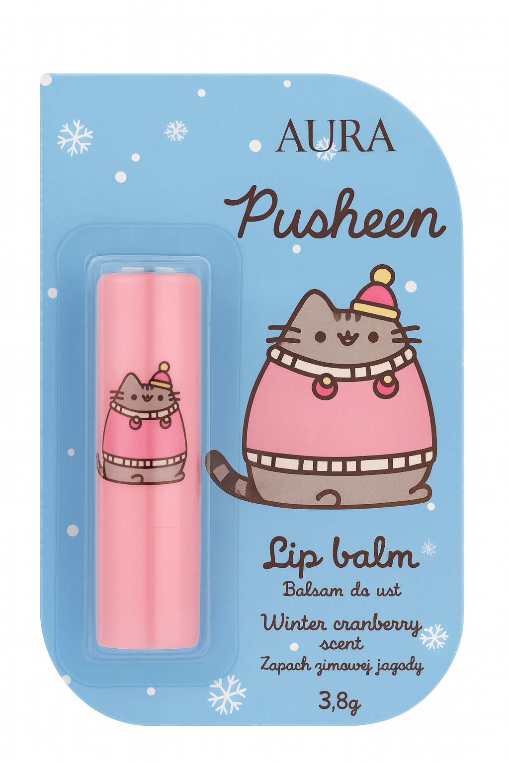 Pusheen balsam do ust w sztyfcie o zapachu zimowej jagody 3,8 g. Nawilża, odżywia i chroni usta dzięki naturalnym woskom i olejom. Idealny na zimę i na prezent.