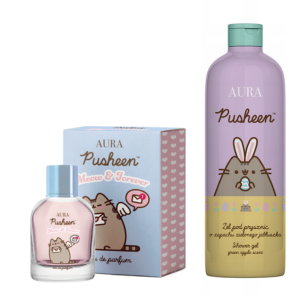 Uroczy zestaw kosmetyczny Pusheen: perfumy MEOW & FOREVER 50 ml i żel pod prysznic zielone jabłuszko 500 ml. Idealny pomysł na prezent dla dziewczynki i fanów Pusheen.