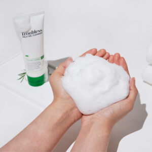 Delikatny żel oczyszczający – łagodne oczyszczanie skóry wrażliwej i trądzikowej, bez podrażnień.