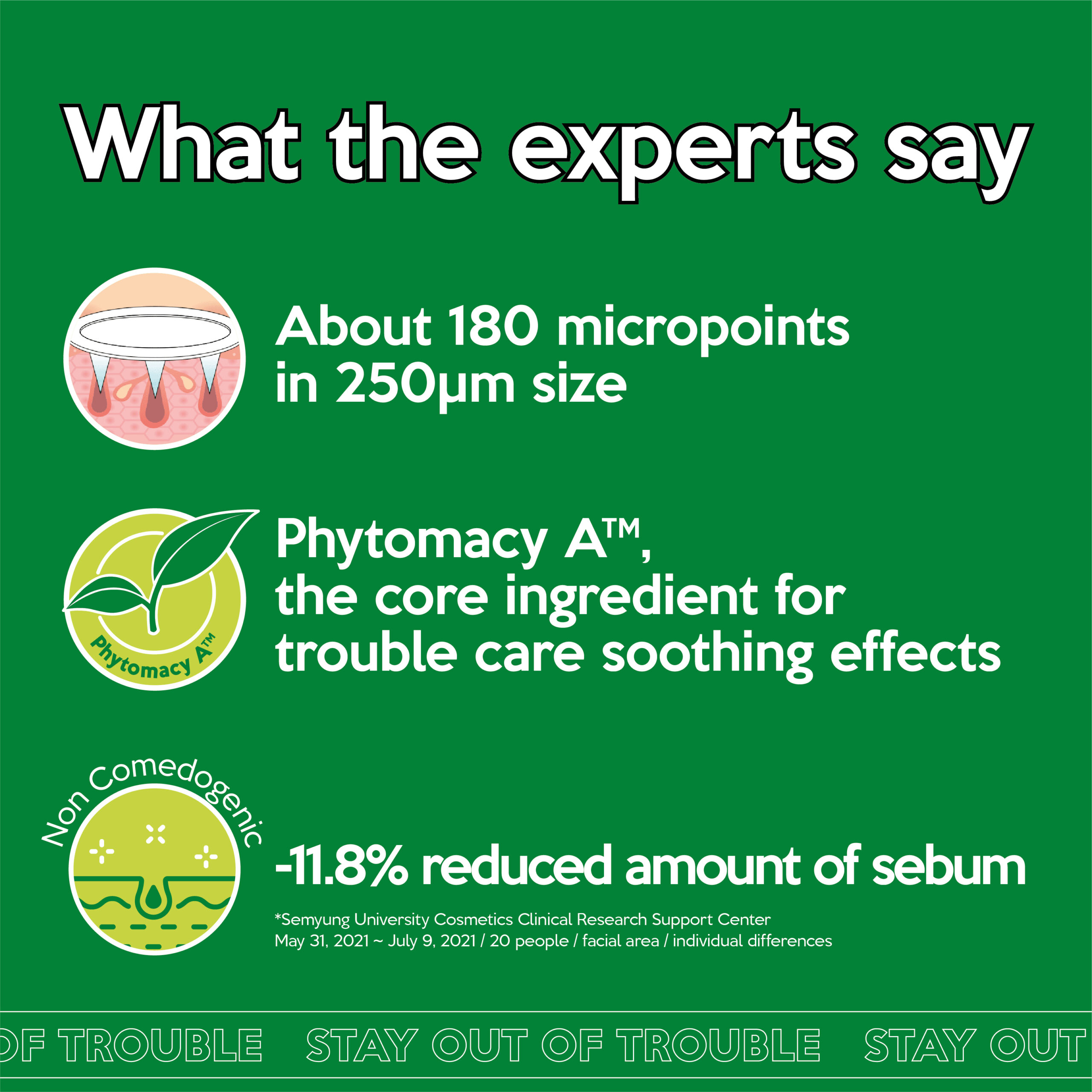 🍀 Troubless Tea Tree Micro-Point Patch – mikroigiełki o długości zaledwie 250 μm nasączone są ekstraktami roślinnymi, które działają precyzyjnie na problematyczne miejsca. Otaczający plaster hydrożelowy zapewnia kojące i ochronne środowisko wspierające proces gojenia.
